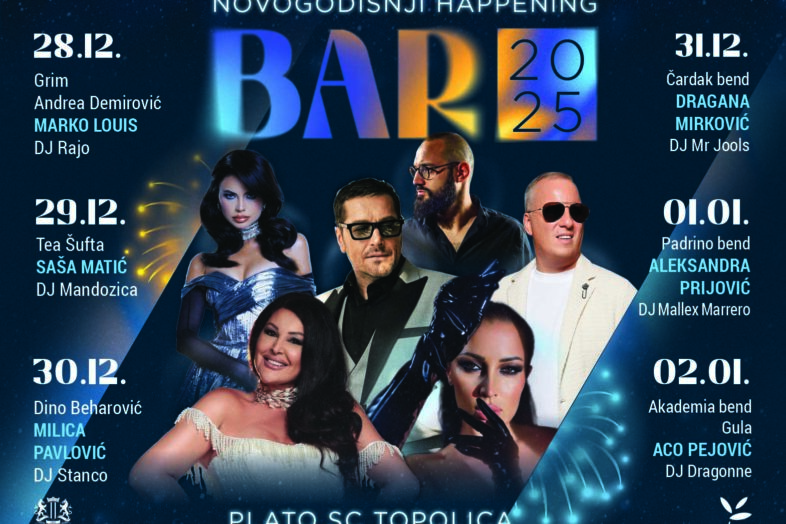Novogodišnji spektakl u Baru: Doček uz Draganu Mirković, repriza uz Aleksandru Prijović, nastupaju i Saša Matić, Aco Pejović, Milica Pavlović, Marko Louis…