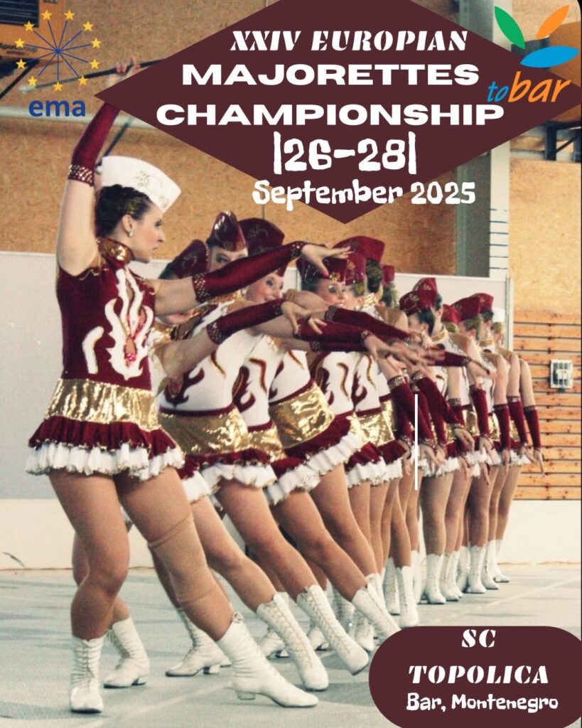 Turistička organizacija Bar u saradnji sa Evropskom asocijacijom mažoretki (EMA) najavljuje Evropsko prvenstvo mažoretki (EMC), koje će se održati 27. i 28. septembra 2025. godine u Sportskoj dvorani Topolica . U subotu, 27. septembra program počinje u 11:00h, a u nedjelju u 10:00h.