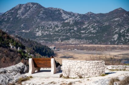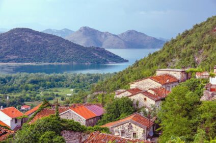 Beautiful panoramic view of Skadar Lake and the unique architecture of the village of Godinje.