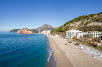 The Beach of Sutomore is 1,200 meters long, and covers an area of 56,000 square metres. Its sand is known for treating rheumatic diseases. The beach is nicely organized and the water is clean. There are numerous restaurants, cafes, fast food, souvenir shops along the beach, where guests can get almost everything they need during their vacation. Many entertainment contents are offered to tourists, both on the beach and in the surrounding restaurants. There are countless clubs, restaurants, cafes, discos, and amusement parks along the Sutomore Riviera.