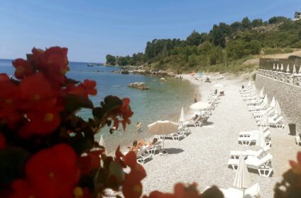 Golden Coast – Inex hotel beach in Sutomore is sandy, 240 metres long, covering an area of 2,400 square metres. It is intended for hotel guests. It offers clean water, fine sand, and safe access for swimmers.