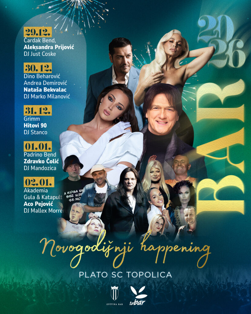 Uz najpoznatija imena domaće i regionalne muzičke scene, Bar će i ove godine dočekati Novu godinu u ritmu dobre energije i pozitivnih emocija.