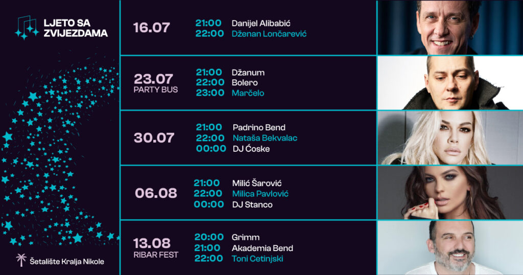 Prvi koncert počinje 16. juna s početkom u 21h, a zvijezde večeri su Dženan Lončarević i Danijel Alibabić.